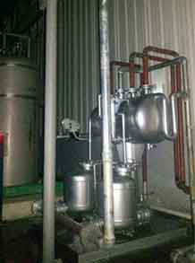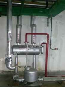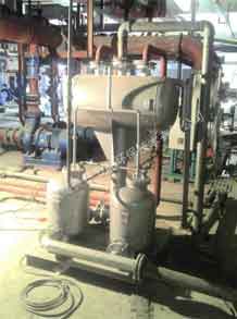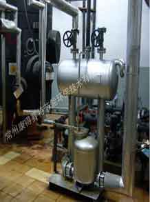 通常冷凝水可以通過疏水閥很方便地排出設備,進入冷凝水排放系統(tǒng),如果冷凝水已經(jīng)被污染,則應該直接排放掉;如果沒有污染,可以將其回收到鍋爐給水箱以利用冷凝水含有的熱量,這樣同時也節(jié)省了水和水處理的費用。有時用汽設備內(nèi)部會產(chǎn)生真空,這樣會影響冷凝水的排出,從而影響蒸汽換熱效率,這時冷凝水就需要用泵壓出去。